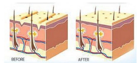 Sẹo được hình thành do liên kết collagen và elastin của da bị gãy và tổn thương. Collagen có tác động tích cực để sản sinh ra các tế bào da mới, giúp làn da hồi sinh nhanh chóng nên các vết thâm cũng sẽ bị làm mờ dần.