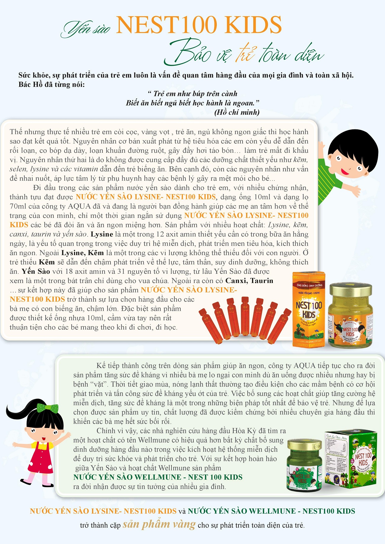 Nước yến sào - Lysine Nest 100 Kids - sản phẩm an toàn, hiệu quả dành cho trẻ nhỏ